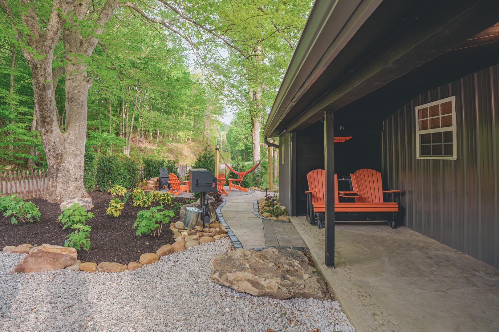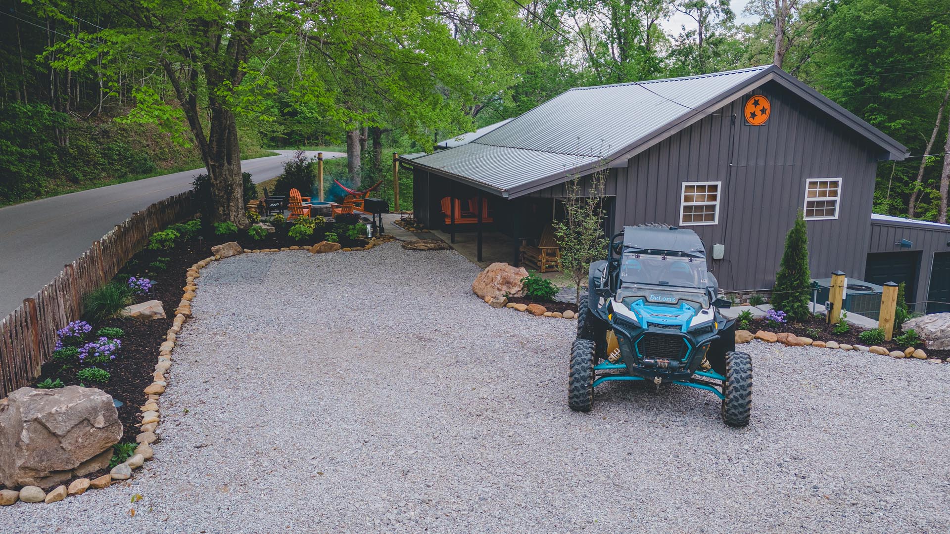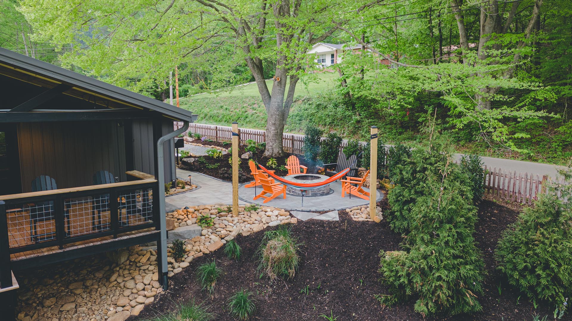 Bonus: After a rainy day, a magical waterfall appears behind the house, adding to the soundtrack of your wilderness escape.