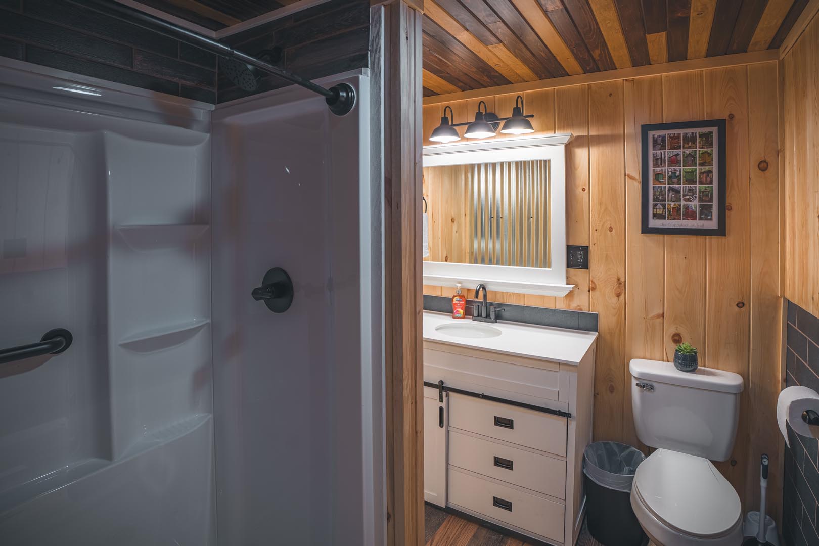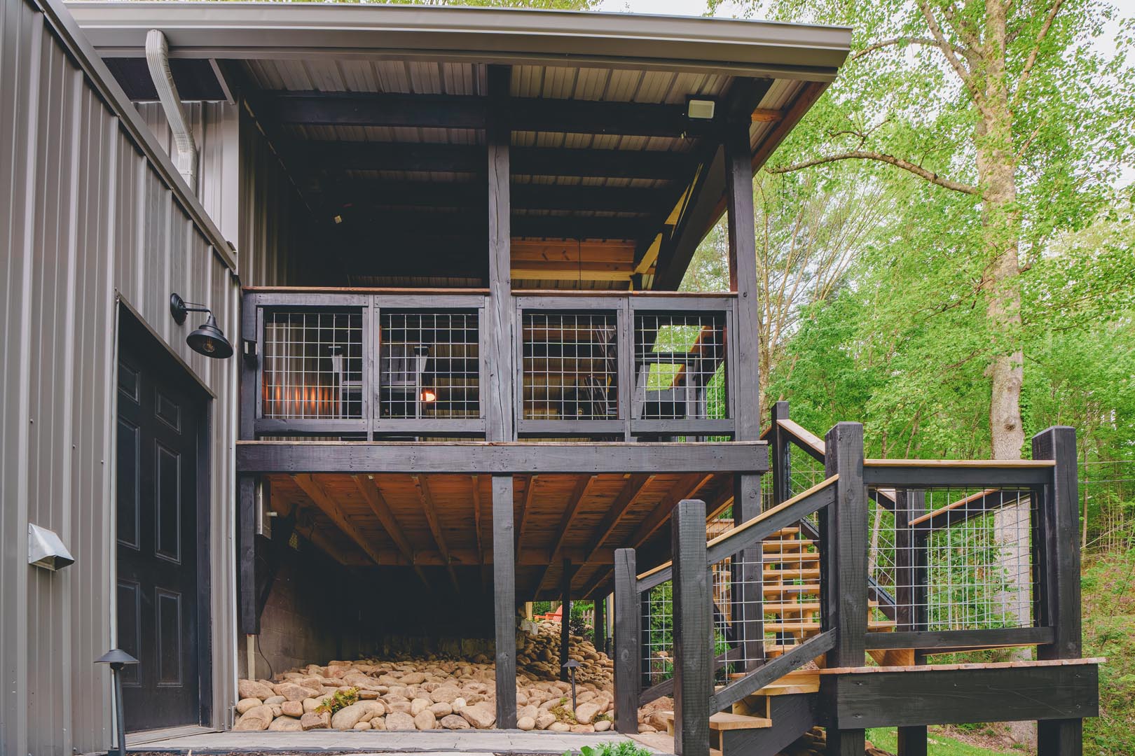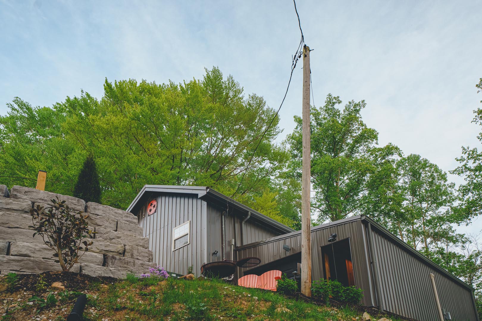 Bonus: After a rainy day, a magical waterfall appears behind the house, adding to the soundtrack of your wilderness escape.