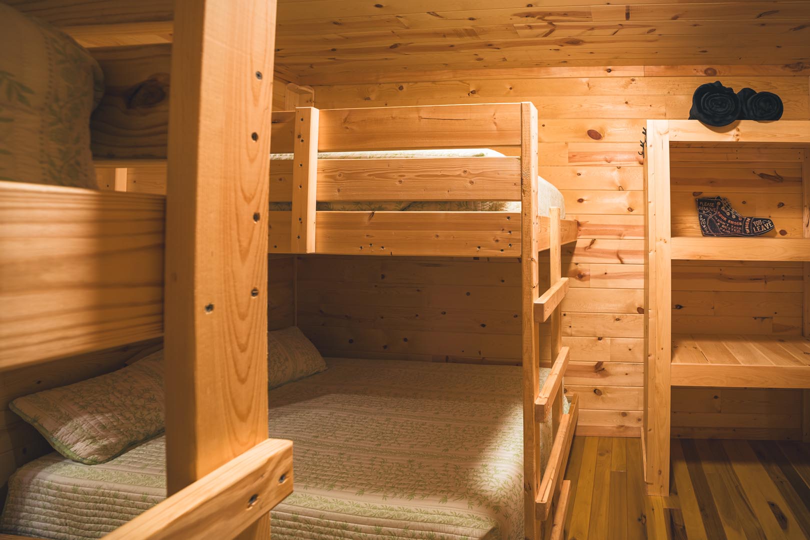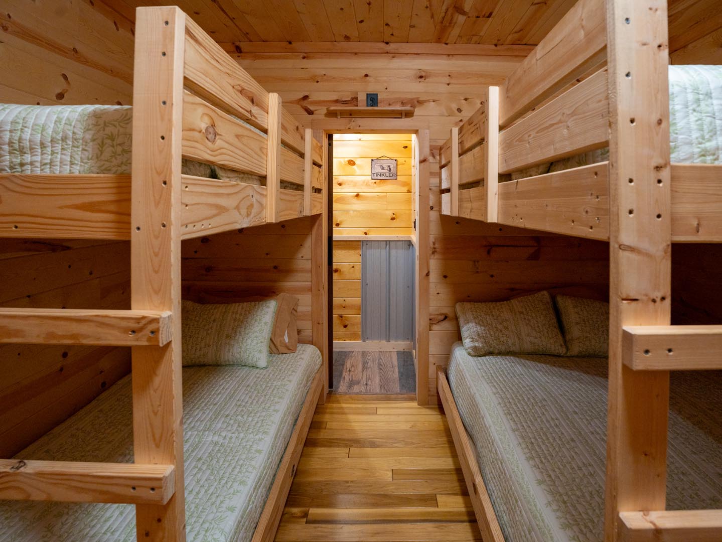 BEDROOM 2: Offers 2 rustic bunk beds (One bunk being full bottom and top with the other being twin beds bottom and top) ensuring a comfortable night’s sleep for 8 guests with capacity for up to 10 (w/ an additional full cot)