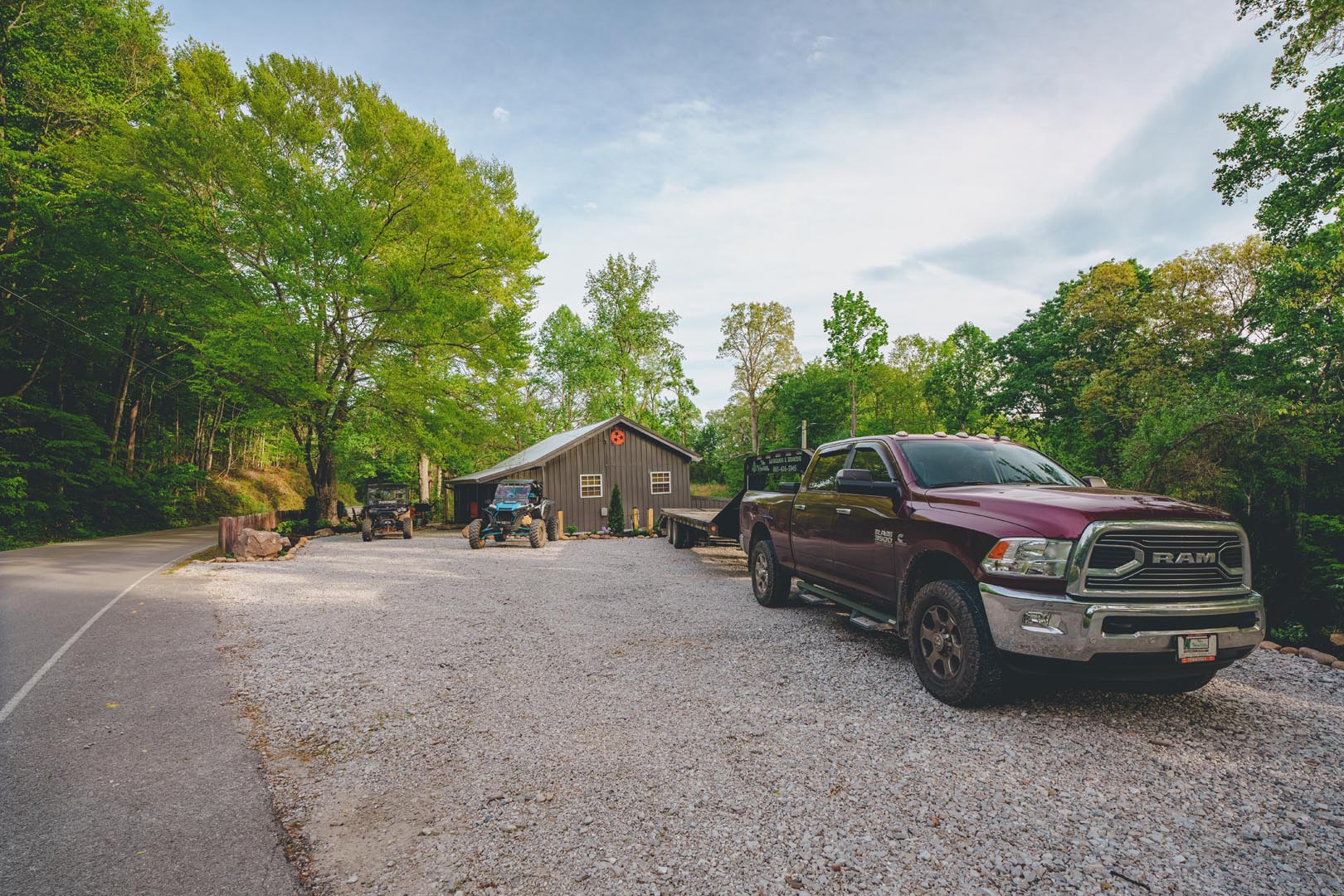 Ample parking is available for trucks and trailers, with a wash pad to clean off your off-road toys before chilling out.